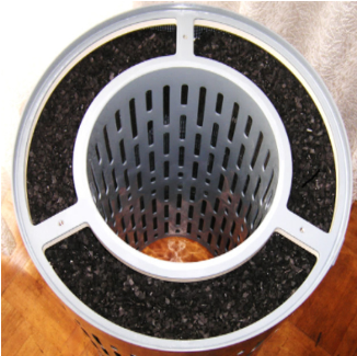 活性炭の脱臭能力はその重量 に比例します。「シガーPOT」 及び「Qポット」に内臓されて いる活性炭の重量は各々約 20kg です。